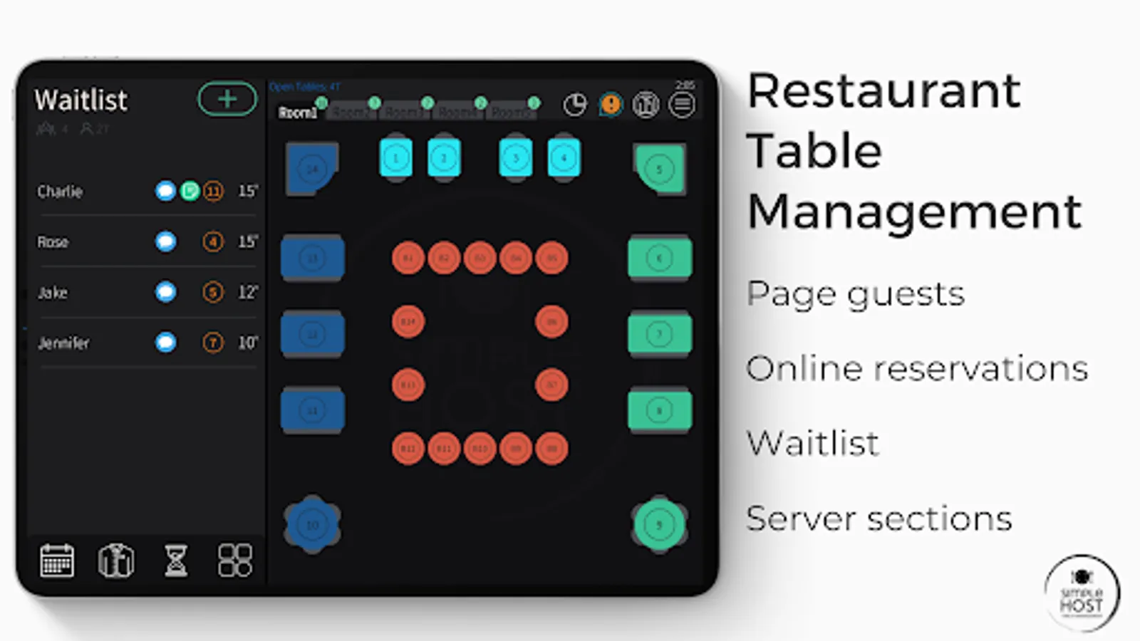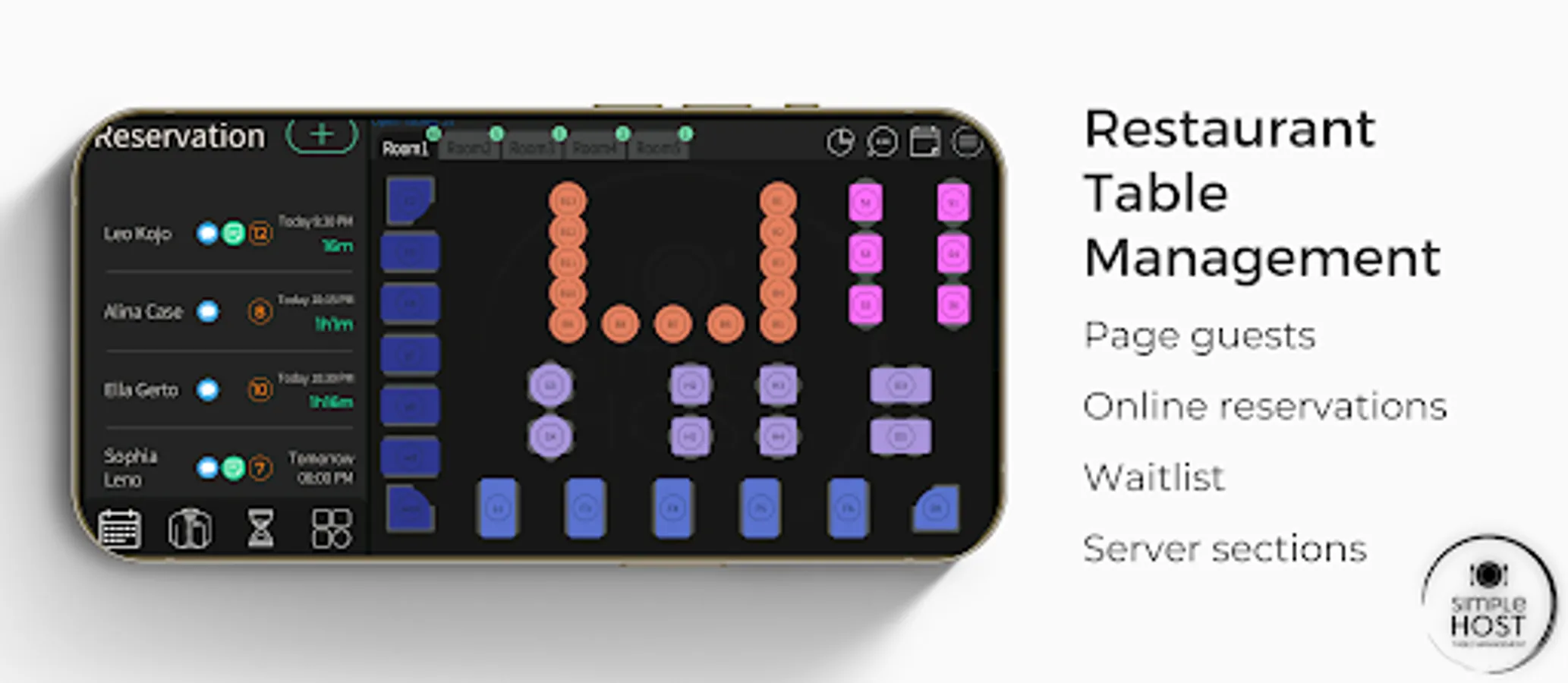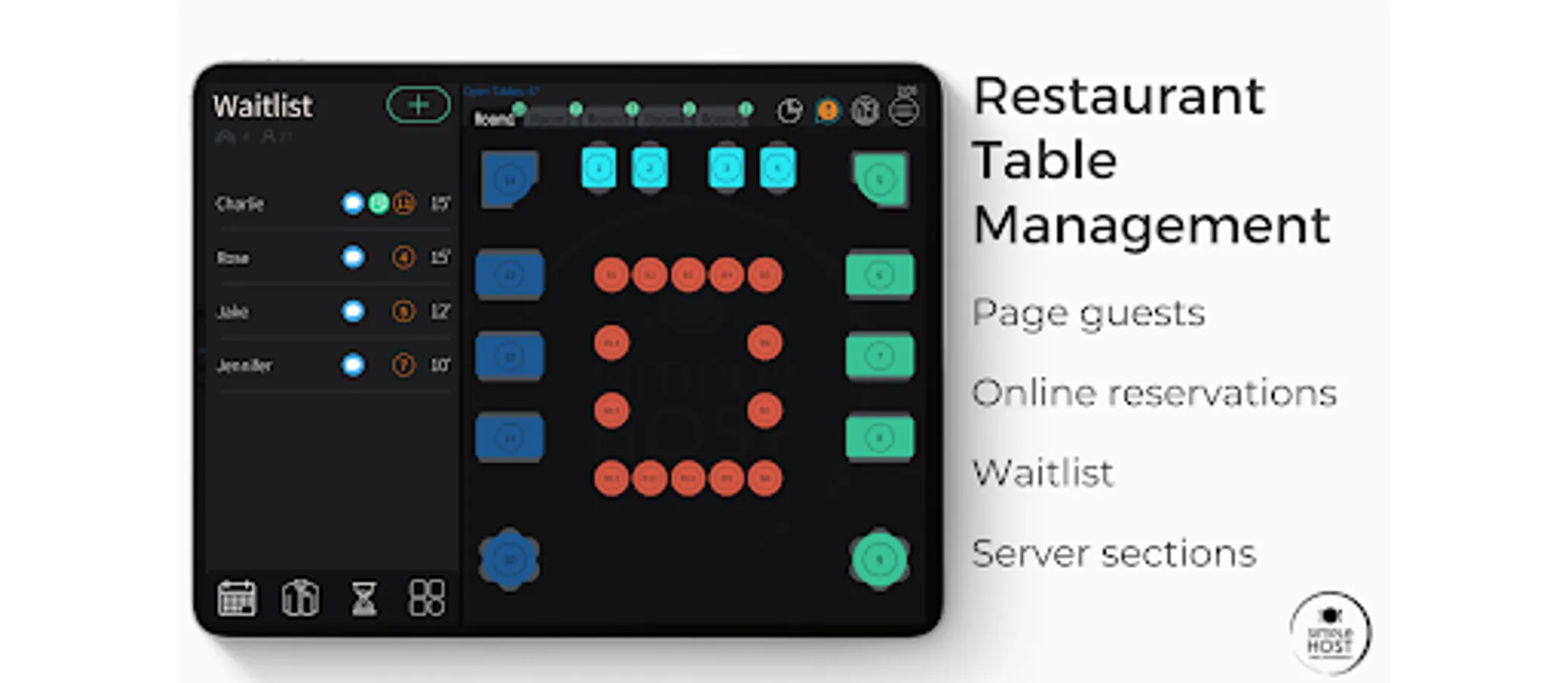 Simple Host is the app with the best features to help run your restaurant organized and stress free in the front of house. From dining room customization, online reservations, waitlisting and text communication with your guests, you will be able to keep your restaurant smooth sailing.