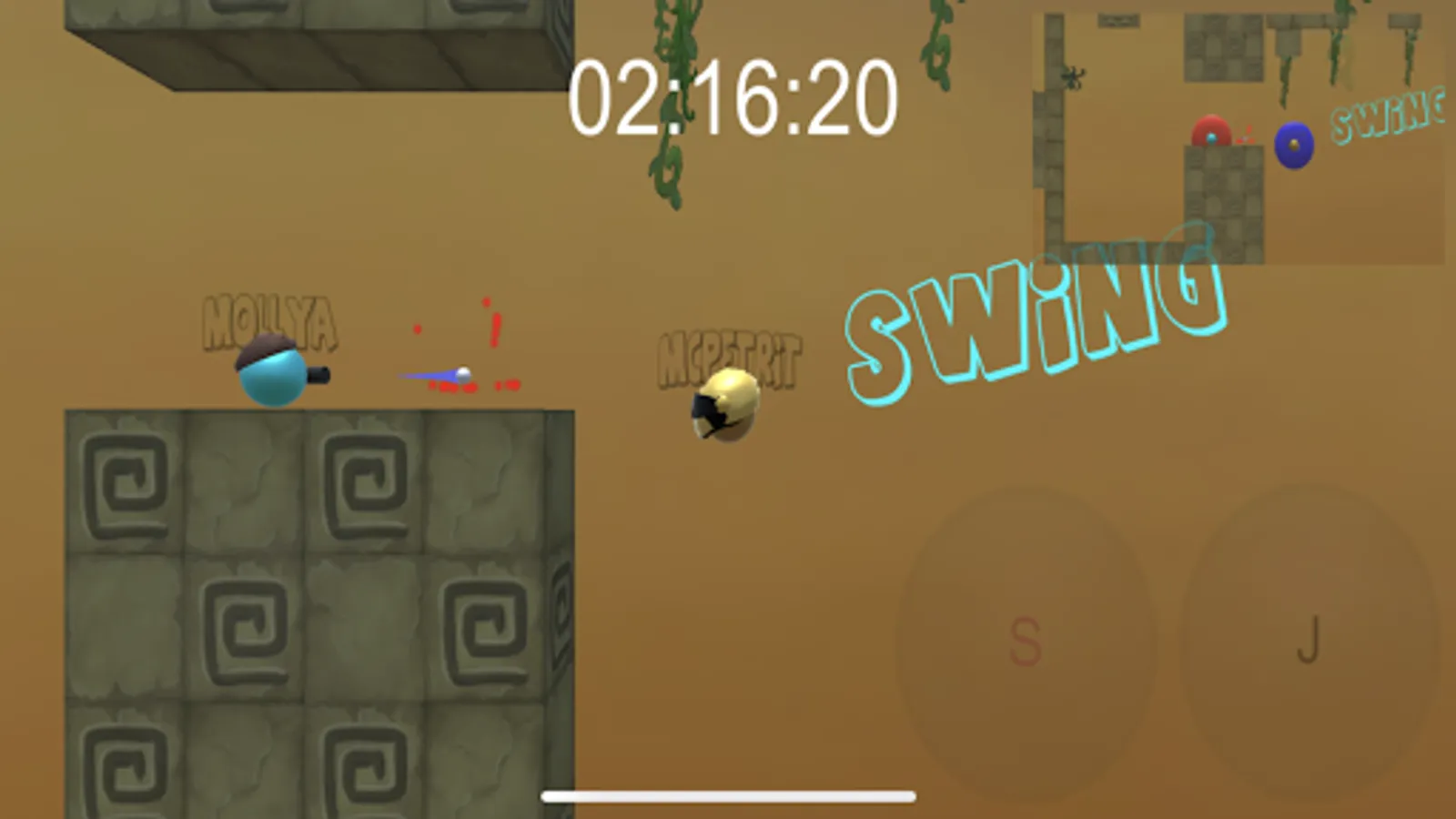Real Time Multiplayer! Race your friends or enemies through an obstacle course. 2-4 players. Play single player to set your best time and get cash for new hats. New weapons and Maps coming soon!