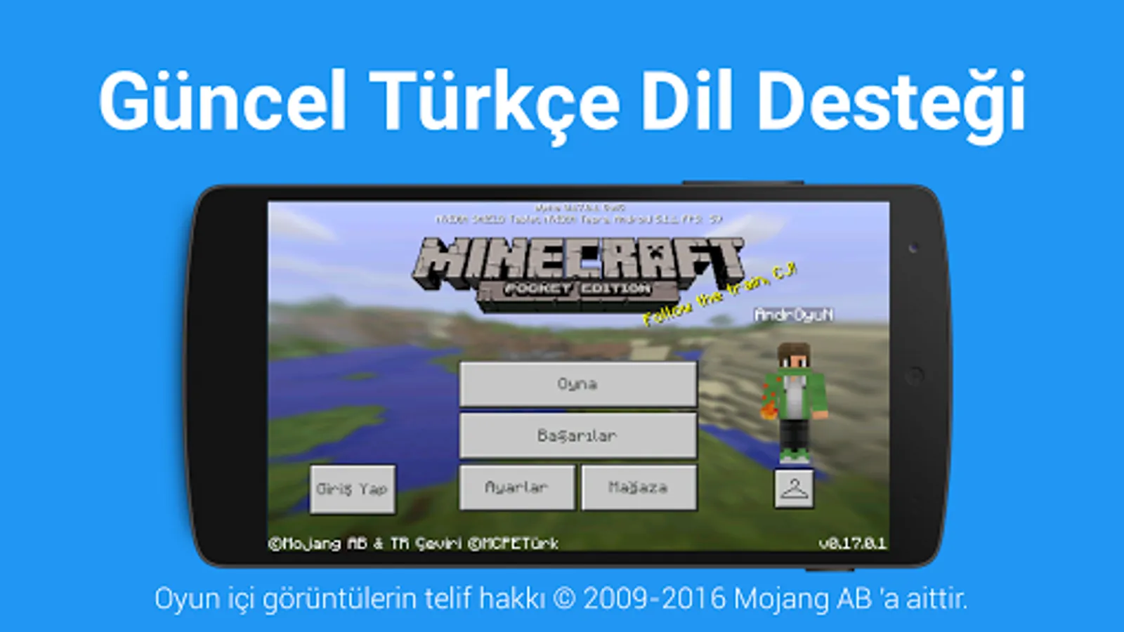 NOTE: English Language: Minecraft PE app does not offer Minecraft Pocket Edition to you for free. It only allows you to play MCPE in Turkish. When voting for the patch, please note that Minecraft PE does not offer free Minecraft Pocket Edition.