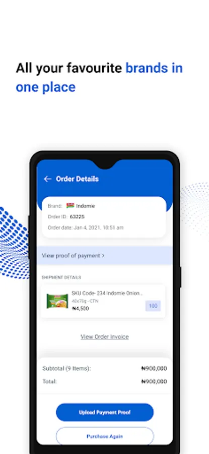 Designed with business owners in mind, this easy-to-use app allows distributors to order favourite products in bulk including; Indomie, Dano, Hypo, Colgate, Power Oil, Munchit, Minime, Kelloggs, Huggies, etc. Distributors can also manage payments invoices, and raise any issues experienced.