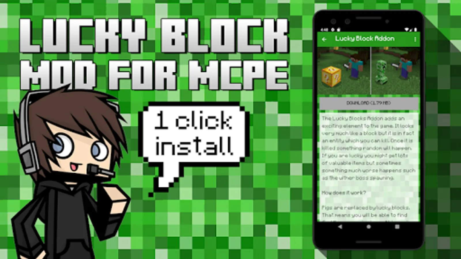 This app provided you the easiest way to download, install, and play lucky block mod for Minecraft PE!