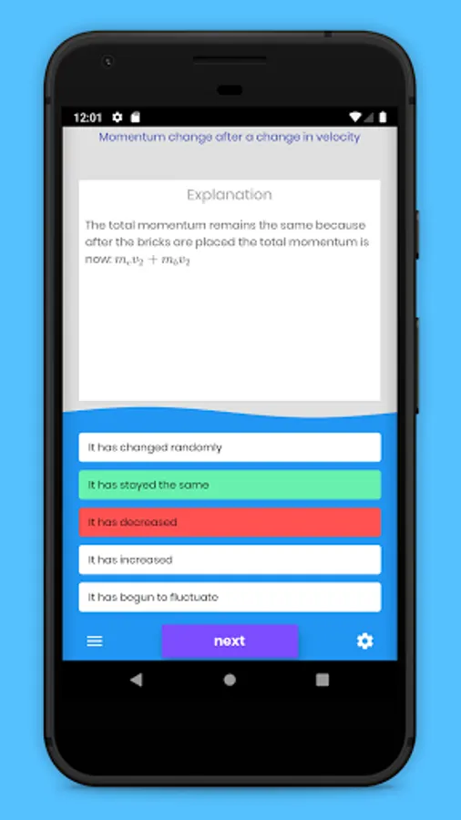 Basic Physics is a free education app that covers the vital concepts of physics. Switch between flashcards and MCQS to practice. Three levels of difficulty are available and you can filter the questions to specific topics by adding tags. When you are ready you can take a quiz to test your knlowedge. Quiz results are charted out so you can monitor your progress over time. All questions have detailed explanations and animations to help you understand the concept. New questions are added on a regular basis!
