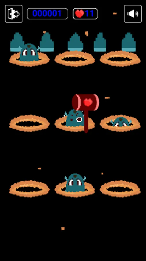 Tap the mysterious blue creature "Nyoro Devi" that appears from the hole in the soil at a random speed, and defeat it with a hammer. If you defeat it, 1 point will be added to the score on the upper left.