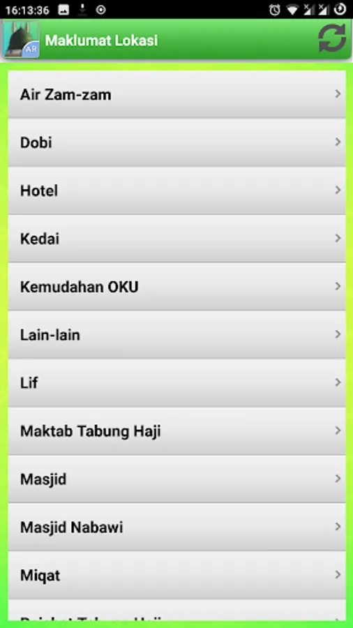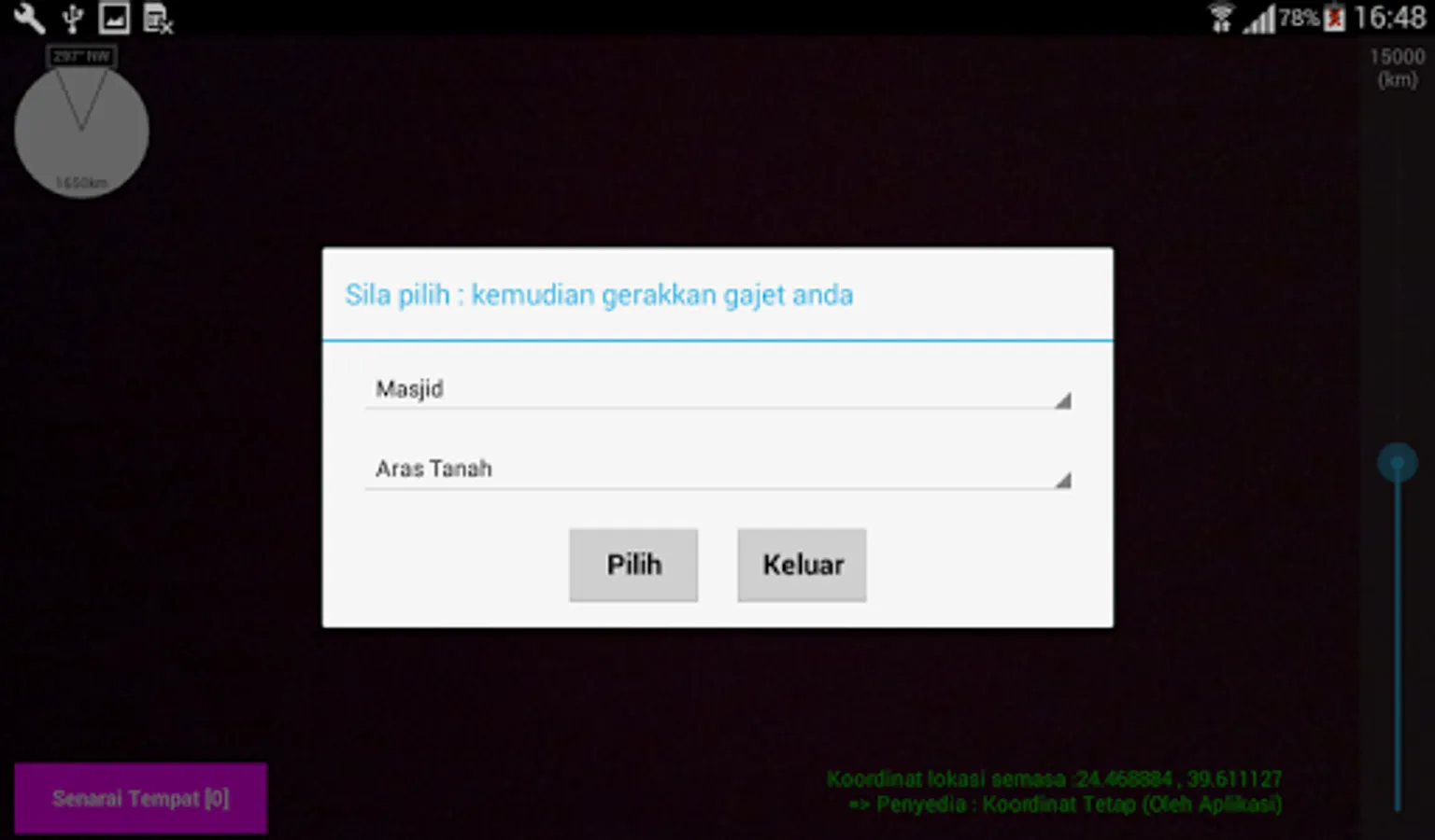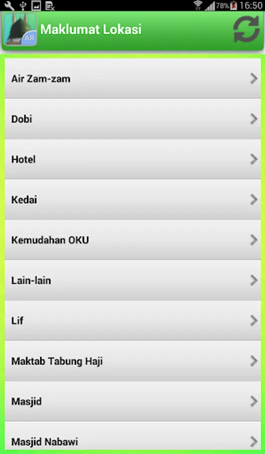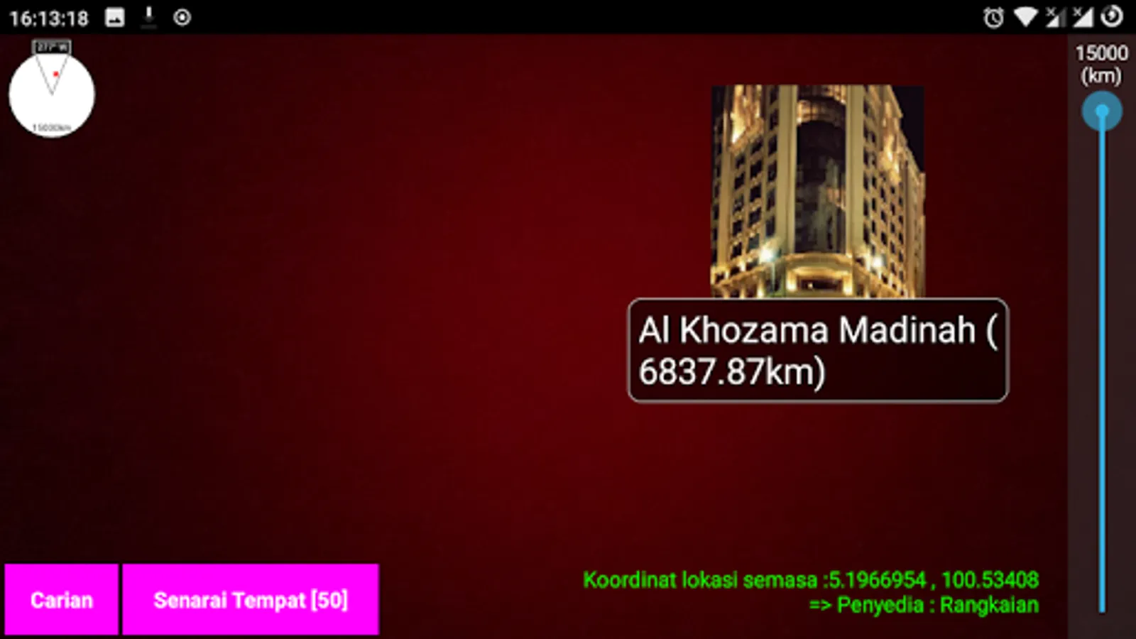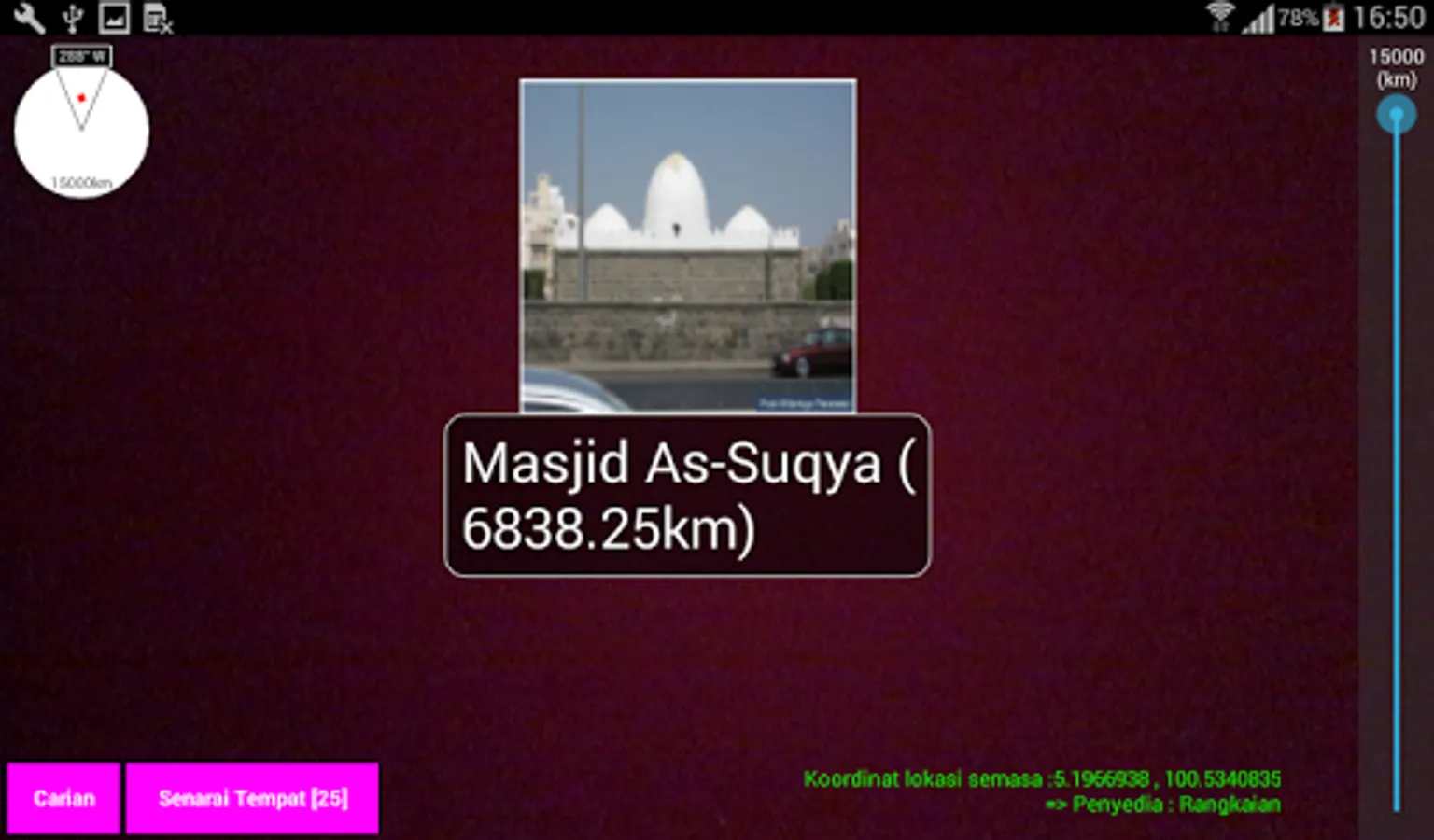 It provides the locations listed by category in the "Location Information" and users can also add their own location in the "Input Area". However, the addition of location, it can only be done in Makkah within 250 km of the Prophet's Mosque.