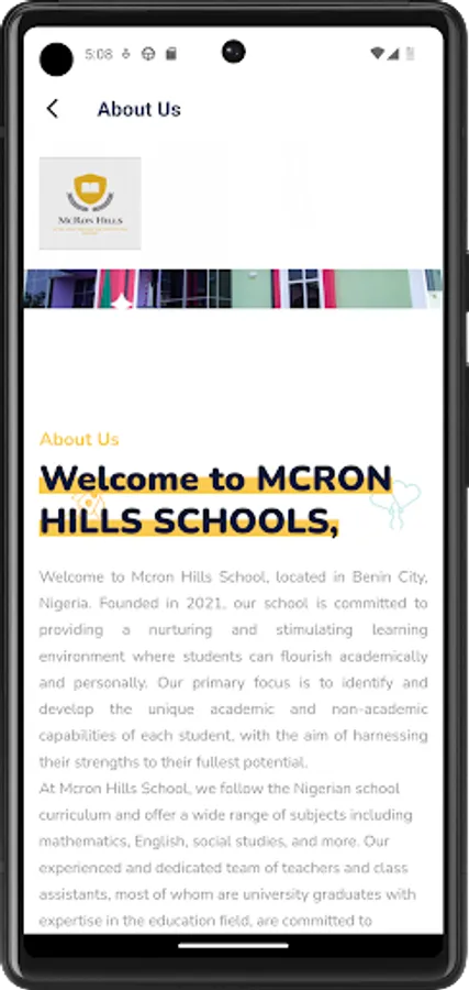 This Application has been created for the benefits of Mcron Hills International Schools Staff, Parent & Student. to help them with school daily activities, from the School Director, Teachers, Administrative and Inventory Manager. And also to help improve the knowledge of the Staff, Parent and Student in an advance way, among others in the society.