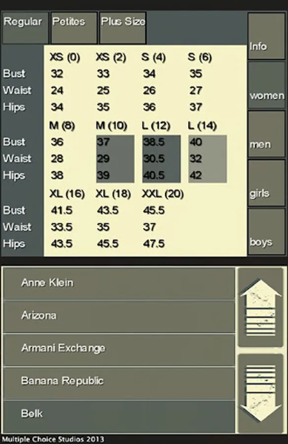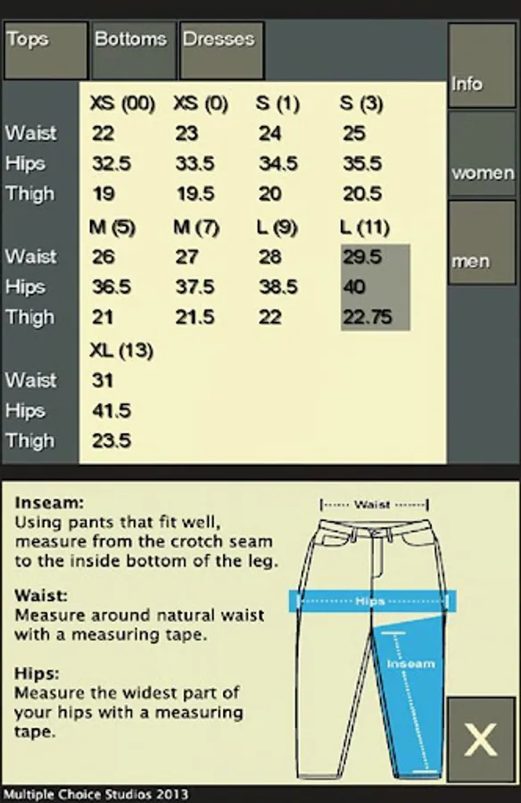 Check out the clothing size charts for 90 different brands, along with diagrams and retailer information!