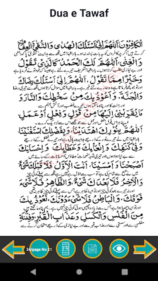 Everyone cannot memorize the whole dua e tawaf to perform tawaf Hajj .So this app has been designed to provide ease to whole Muslim umah to have this dua in their mobile phones so that they could perform the act in a good way.The app contains this dua with urdu translation to help you in understanding it also.