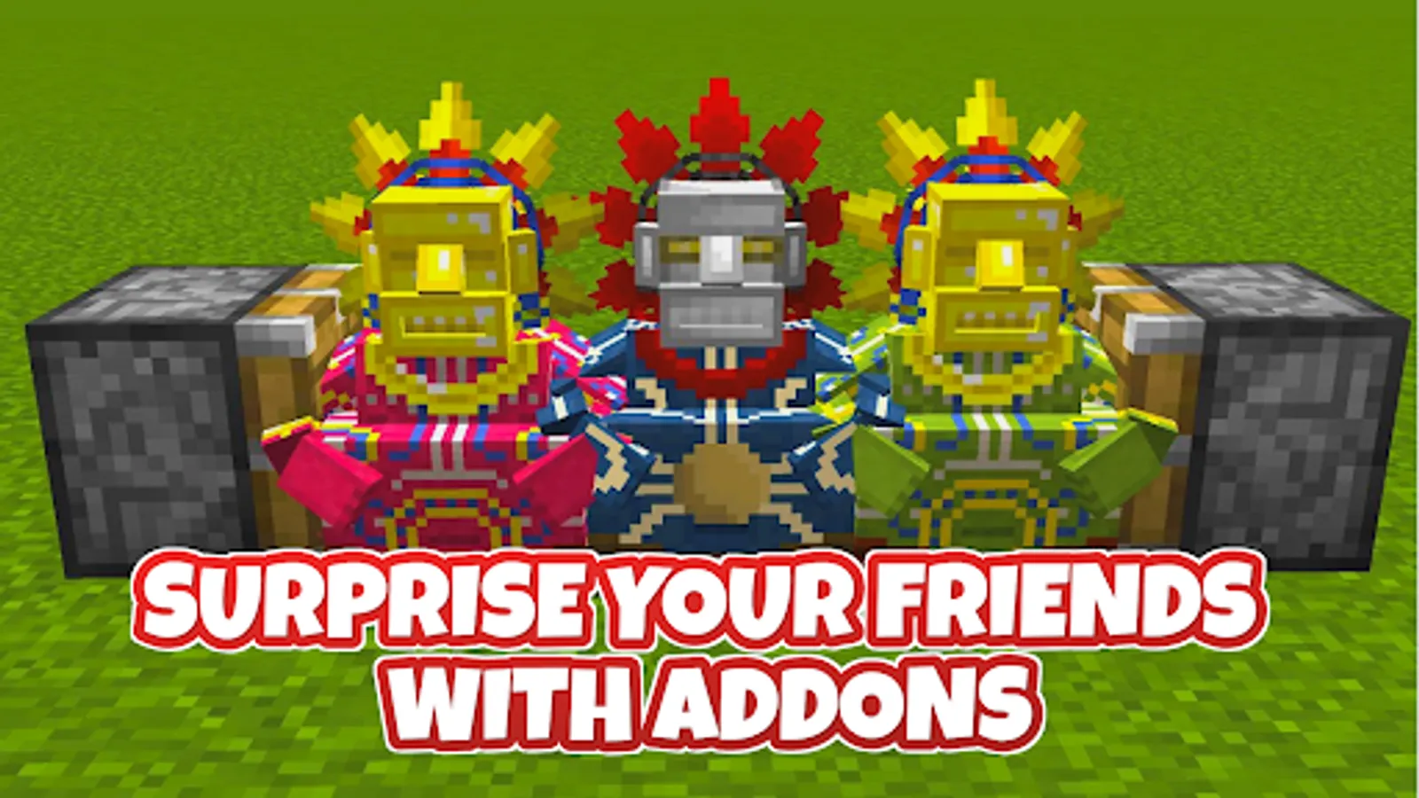 Be creative and show off your unique style! Customize your Minecraft game with addons and mods. With an ever-expanding catalogue of mods, there’s no limit to the worlds you can create.