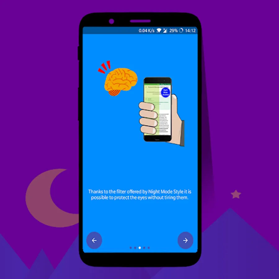 It rests better thanks to the filter offered by Night Mode Style reducing the amount of blue light emitted from your display.