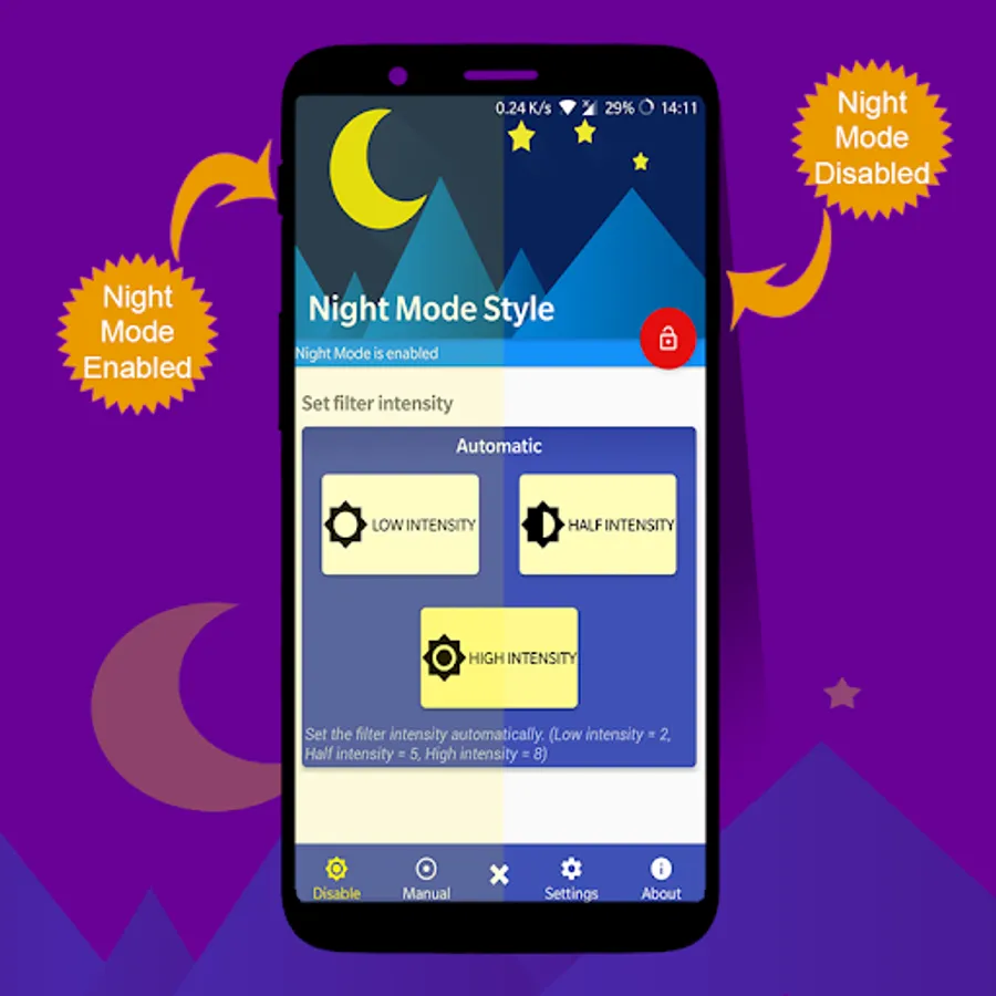 Thanks to the Night Mode Style filter, you can protect your eyes without tiring them.