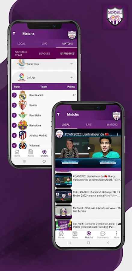 McSport App est créé pour satisfaire les fans du football à l’international pour les masculins et féminins.