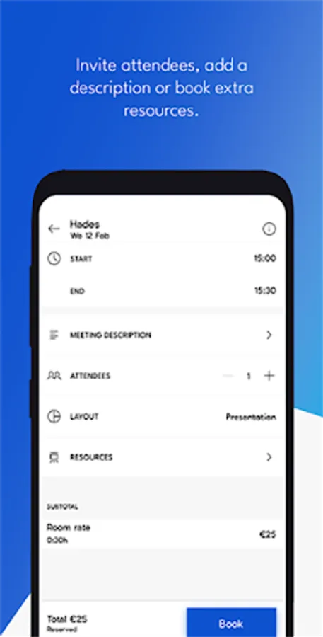 Easily book a hot desk for the day and meeting rooms by the hour. Book your meetingroom or coworking spot via the app for any duration.