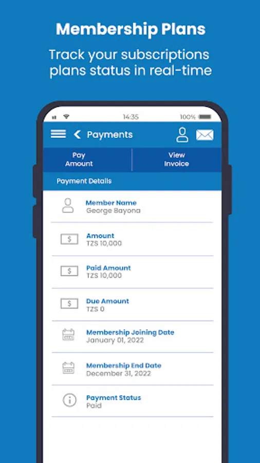 • Membership Subscriptions - Track your subscriptions plans status and payments in real-time