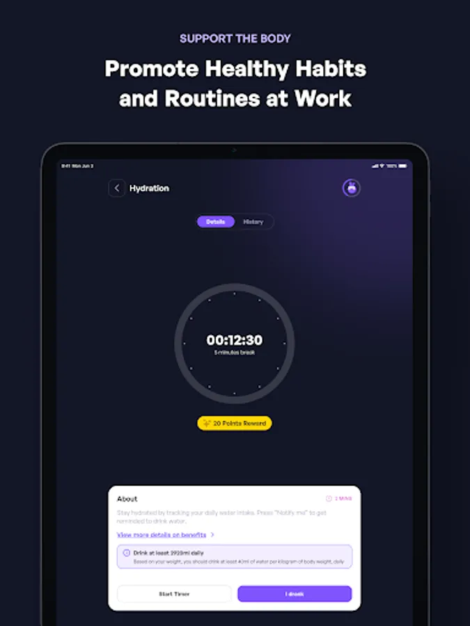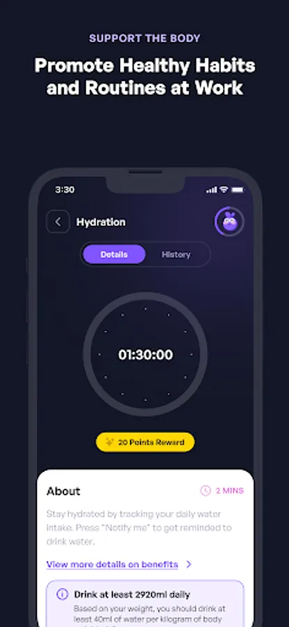 Our wellness app offers a solution by providing a range of mindfulness exercises designed to help employees manage stress and increase their overall well-being.
