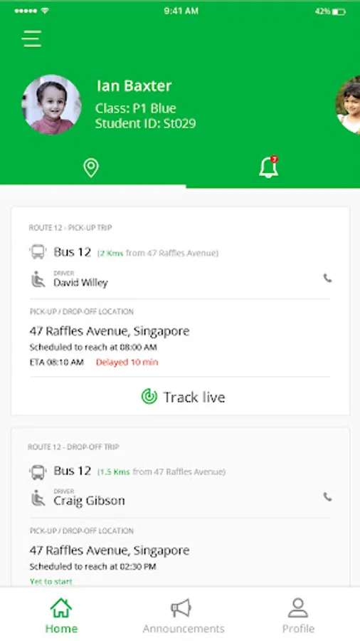 - Multiple trips can be assigned for students (Pick Up/Drop Off)