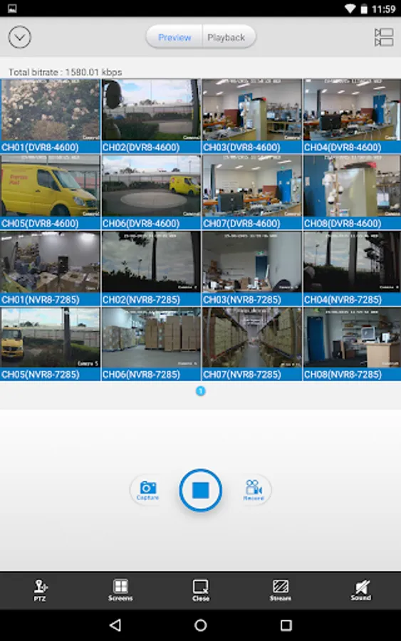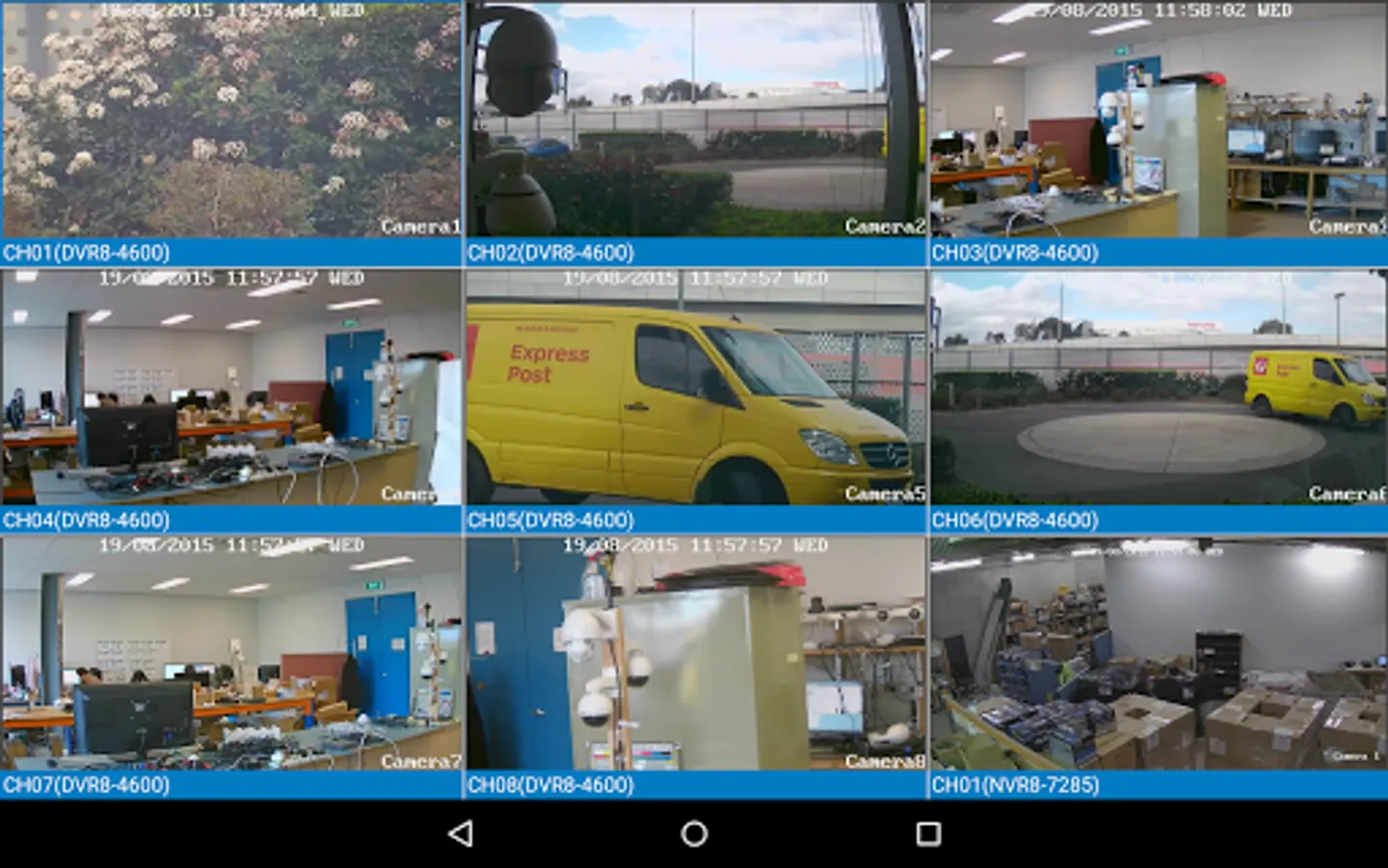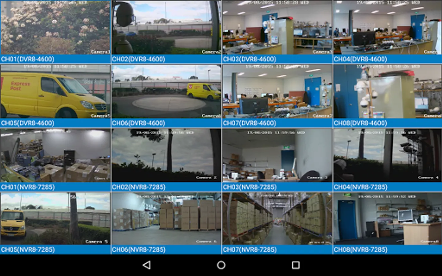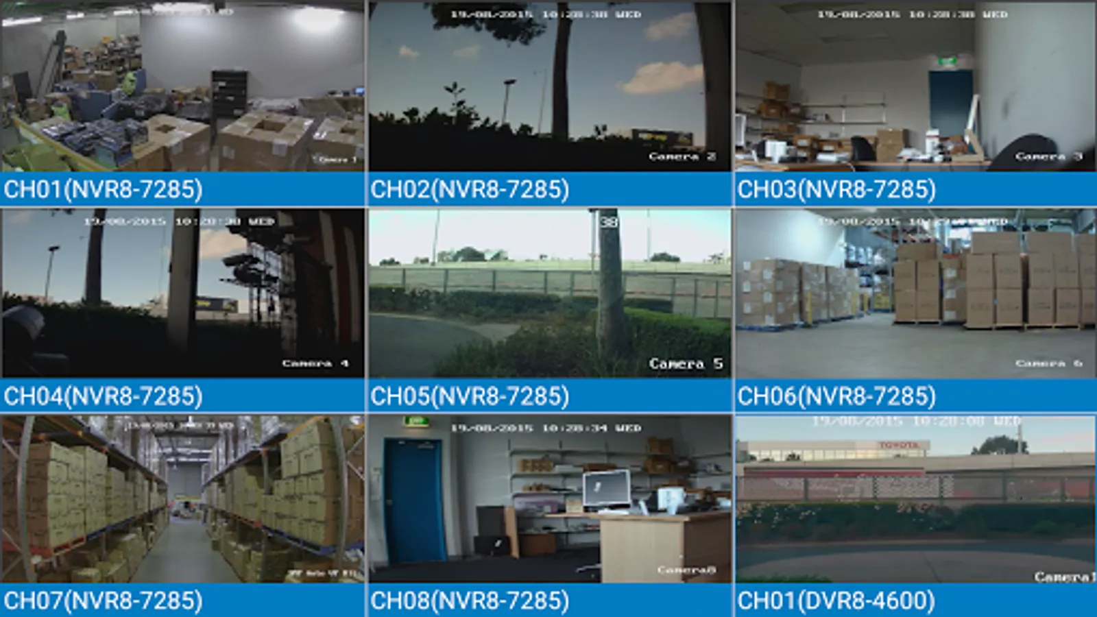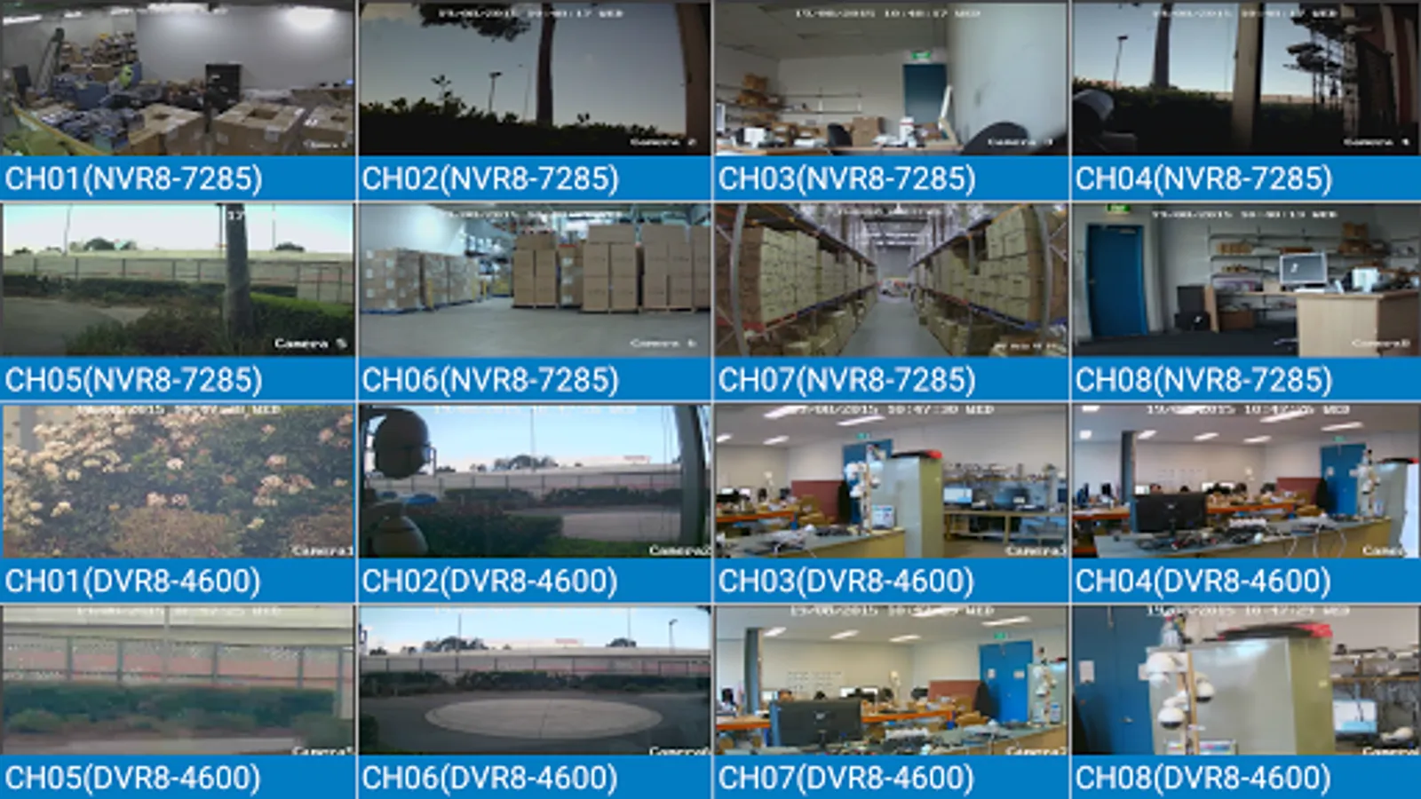 Multi-channel viewing with up to 16 cameras on screen at the same time (16ch view works best on tablets)