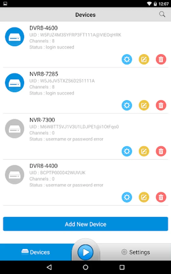 Play back stored recordings from your DVR or NVR on your handset or tablet (requires high upload speed internet)
