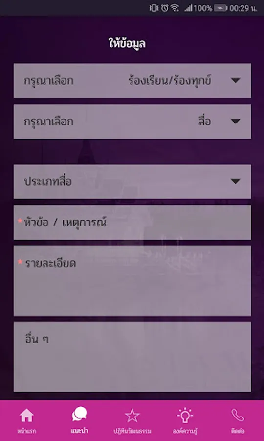- Suggestions / Activities Complaint / Complaint Or informing relevant cultural information To the relevant departments immediately at all times