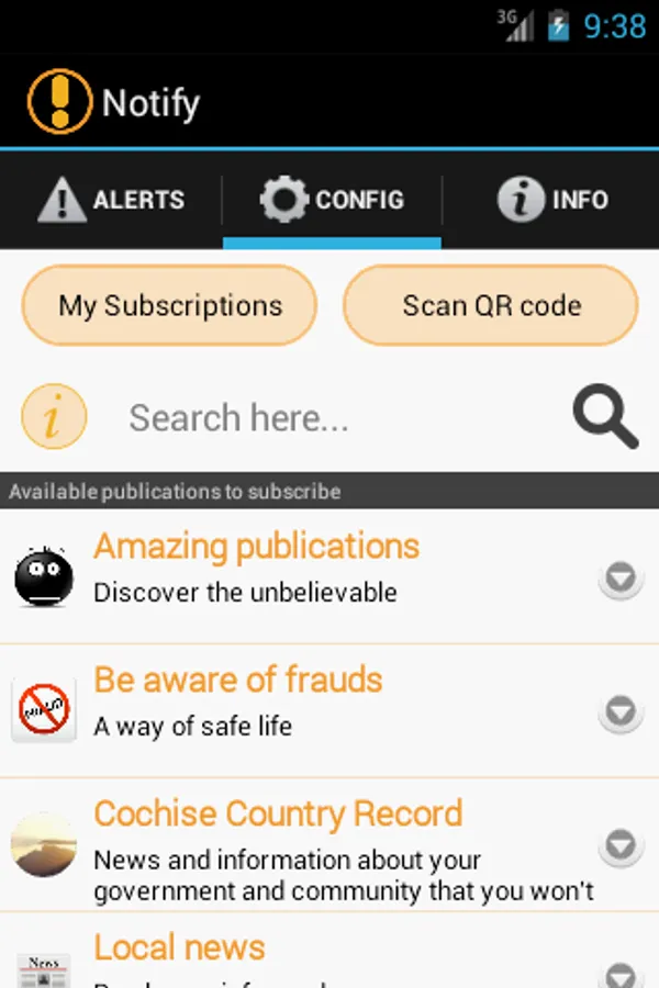 You will choose the publishers of your interest and each message sent by those publishers will be displayed both, on the list of the last publications and by a notification that will be sent to your mobile. In this way you will be informed immediately of any event of your interests.
