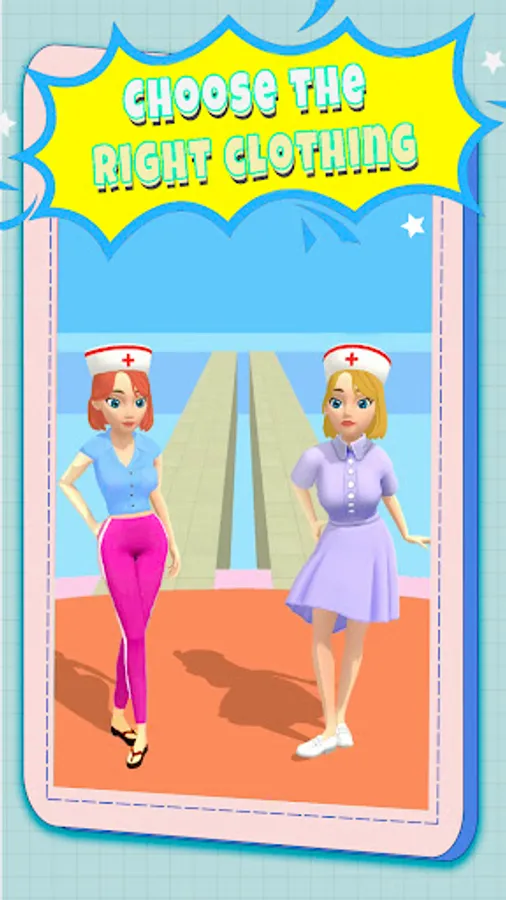 Pick the most fashionable clothes, fight the most fashionable battle, and you are the Catwalk Queen.Each level is a different theme, choosing clothes while walking the catwalk, testing your reaction speed and aesthetic ability. After choosing your clothes, a judge will rate your match, as long as your score is higher than your opponent, you can kick your opponent into the water. Constantly defeat your opponents, you can not only enjoy the sparkle of the flash off lights exclusively, but also unlock more beautiful clothes and dress up your beautiful model! Step into the glamorous world of fashion with our exhilarating dress-up game! Prepare to unleash your creativity as you embark on a thrilling catwalk battle like no other. Get ready, girls, because it's time to showcase your impeccable style and conquer the runway! With our fashion catwalk dress-up game, you'll experience the ultimate fashionista adventure. Let your imagination run wild as you choose from an extensive collection of trendy outfits, stunning accessories, and jaw-dropping hairstyles. From elegant evening gowns to chic casual wear, our game offers an array of options to suit every fashion taste. As you enter the world of fierce competition, embrace the thrill of the catwalk. Strut your stuff with confidence, knowing that your perfectly styled ensemble is turning heads and leaving the audience in awe. Make a bold statement with your fashion choices and watch as the spotlight follows your every move. Engage in exciting battles with other stylish girls from around the world. Showcase your unique fashion sense and prove that you have what it takes to be crowned the queen of the catwalk. Each battle challenges you to create breathtaking looks that reflect your individuality and make a lasting impression. Whether you're a seasoned fashionista or just starting your style journey, our dress-up game is designed to ignite your passion for fashion. Experiment with different combinations, mix and match patterns, and unleash your inner trendsetter. Express your personality through your outfits and let your inner fashion diva shine. So, are you ready to conquer the catwalk and unleash your fashion prowess? Step into the spotlight, embrace the thrill of the battle, and let your impeccable style speak volumes. Get ready to make heads turn, hearts skip a beat, and become the reigning queen of fashion in our exhilarating dress-up game. It's time to dress up, strike a pose, and rule the runway like never before!