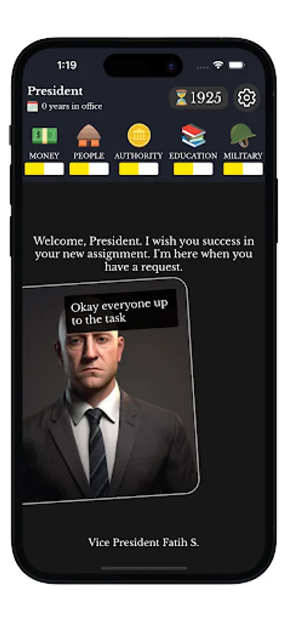 🏛️ Welcome to President Simulator, the ultimate political simulation game that puts you in the shoes of a powerful leader! Prepare to embark on a thrilling journey where every decision you make shapes the fate of your country. Get ready to test your leadership skills and make your mark in the annals of history!