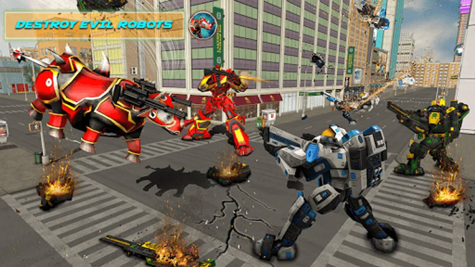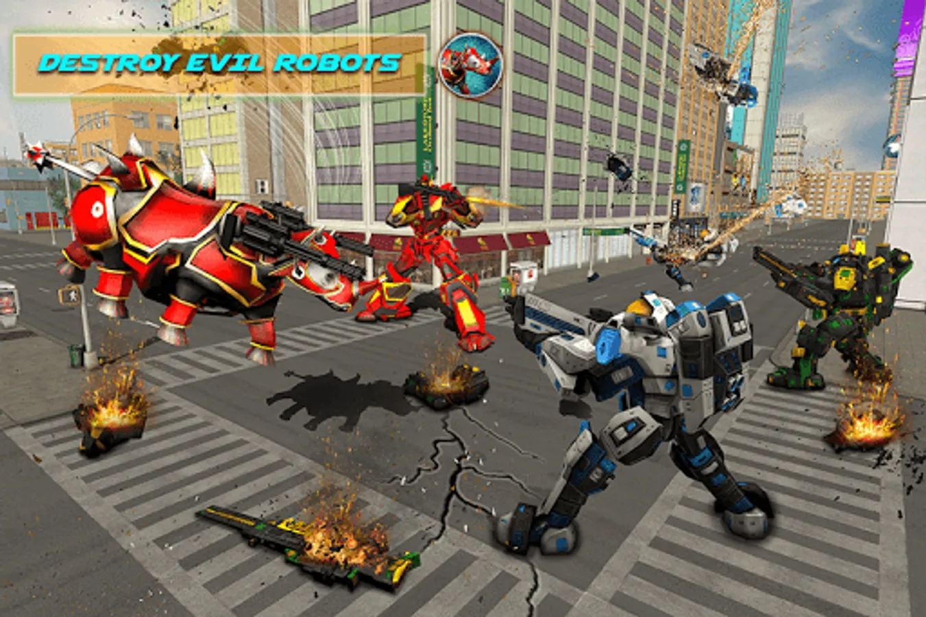 Rhino Robot Car Futuristic Robot Transformation is our fresh addition to real robot fighting games coming with wow multi robot transformation along with cool new robot dash mixed with pretty cool transforming cars and robot transform with a twist that is not seen in transform robot games or any robot action games. In our mega robot games our main focus is providing action which is why we choose robot rhino with robot car or robot truck in mega robot wars. Our rhino robot app is packed with futuristic robots war which is new to the genre of real robots with robot battle plus you also get to experience futuristic robots against evil robots a concept that is new for robo games and also the robot transforming games. We always try to develop robot action for robot games along with innovative robot transformation so that our games are preferred amongst robot transform game. Are you ready for the newest robot attack available in the market, are you prepared to handle the machine aggression of the rhino in a town where evil forces are trying to take over. If Yes then don’t waste time and jump right in and take your real robot car and enjoy robot transform games when you are in charge of transforming car to rhino with a cool monster truck that no one used before in any transforming robot games.