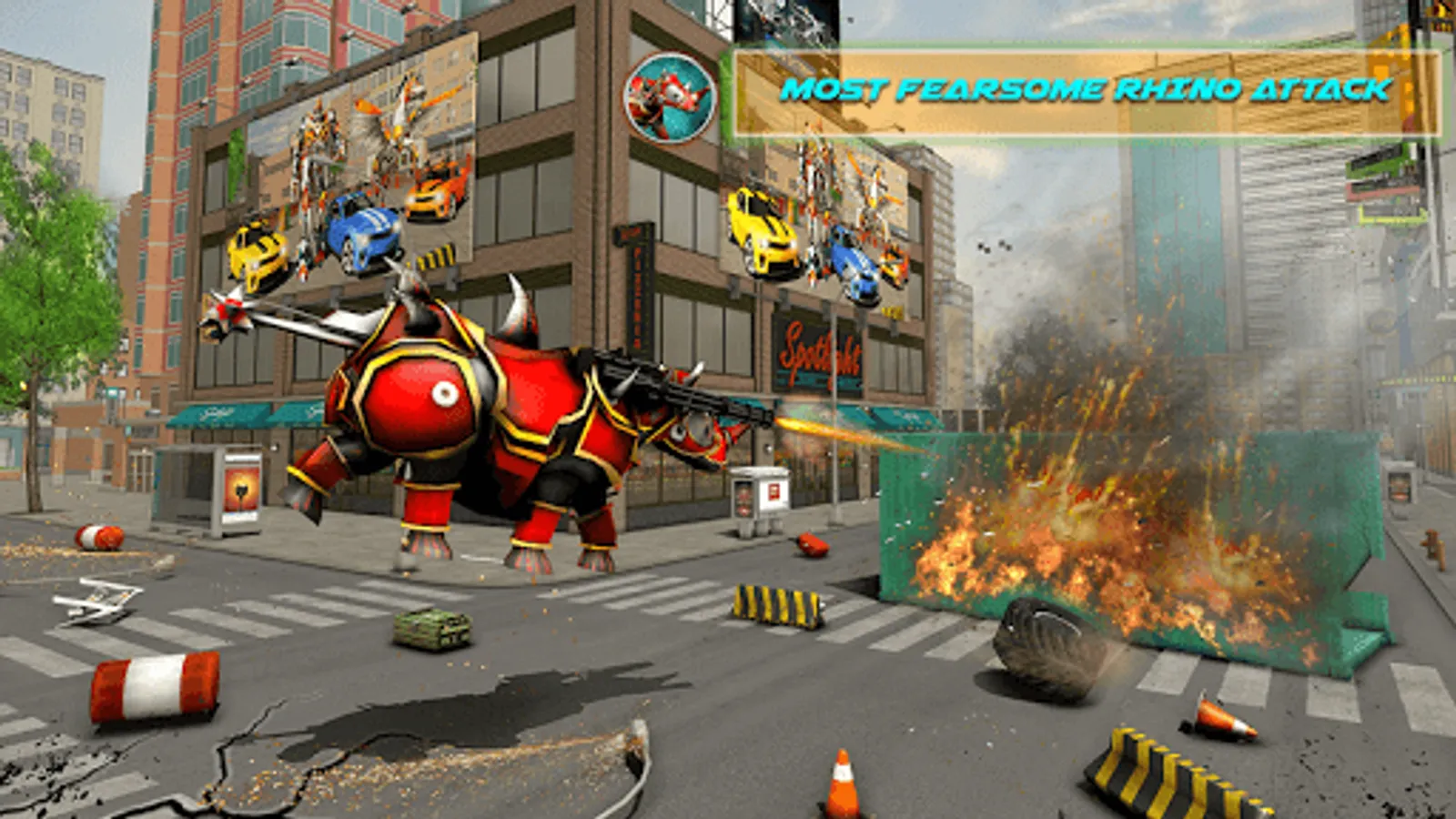 Rhino Robot Car Futuristic Robot Transformation joins genre of robot fighting games with the mix of most unique robot action added with nice real robot fighting where futuristic robots are united against the evil real robots within a robot battle with transforming robots making it stand tall among robot transforming games and car transform game. The rhino goes through a beautiful robot transformation to gear up for the city survival rescue mission. The rhino attacks in many ways and transforms back and forth into monster truck and a robot making it a nice multi robot transform action sequence making this app a nice robot transform game with transforming cars. Enjoy our robot animals games app and stay tuned for more transform robot games in future. Enjoy real robot car mixed with robot animal games or robot transformation games giving extra edge to the wow effect of robot transforming games.