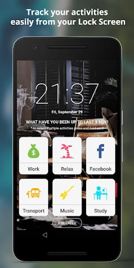 SelfM Time tracker is a quick and FREE way to perform the main task instead of you. Setup it once, add your activities and go ahead. Each unlock points out the activity you have spent your time on. Apply goals and alerts features, review your progress with record logs and statistics, increase your productivity.