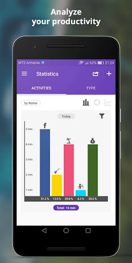 Spending only a few minutes a day on logging your working hours, study time, or just free time you will get daily, weekly and monthly statistics in the form of diagrams and graphs. Using this data you'll be able to control and manage your time effectively. This tool helps to concentrate on work, reduce waste time, and improve the productivity.