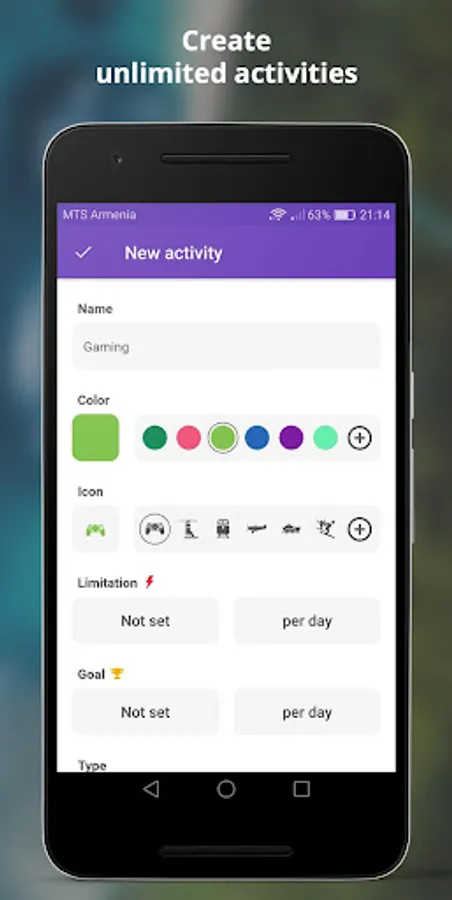 • Choose the type of your activity, if it’s missing, create it yourself from here