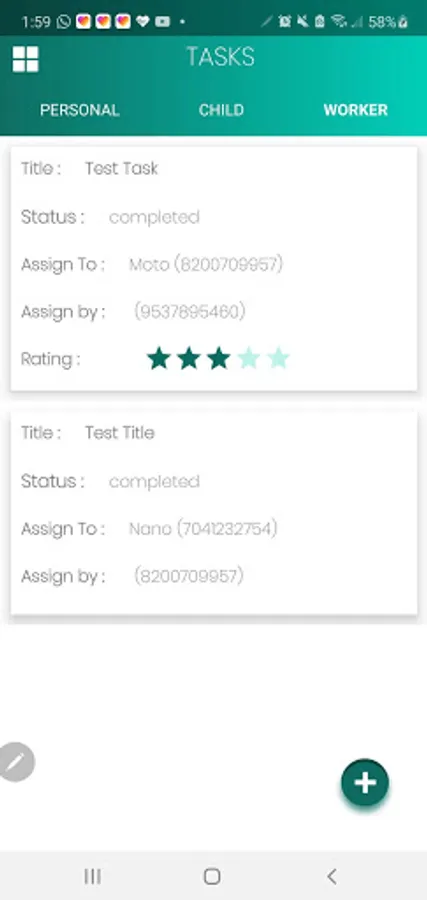 Kids get points for job well done on homework, house chores and staff/workers are rated.
