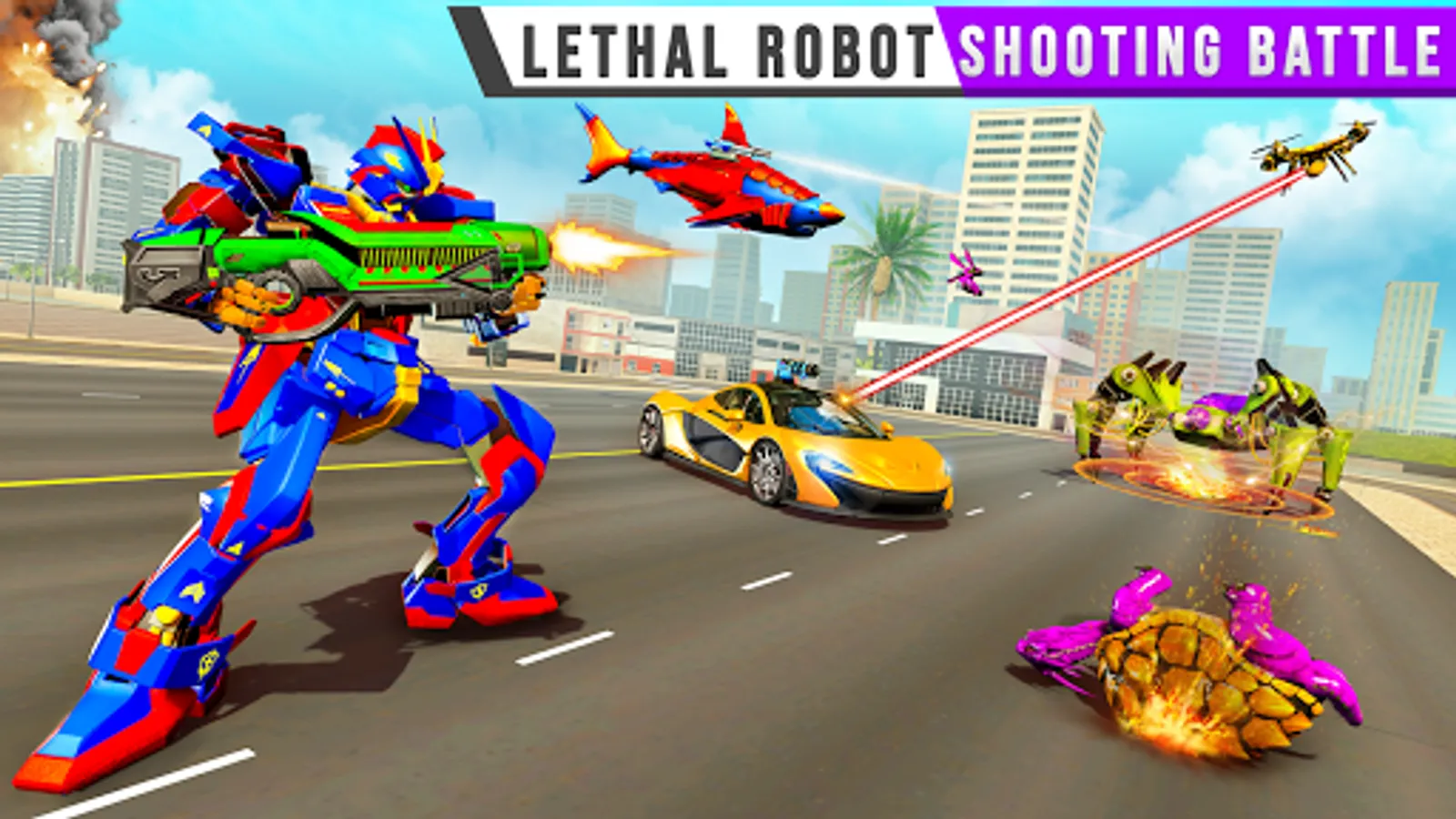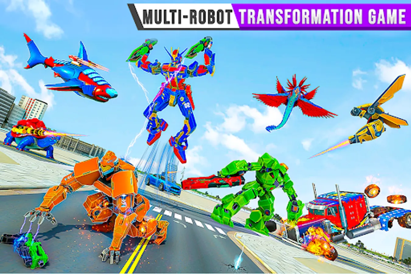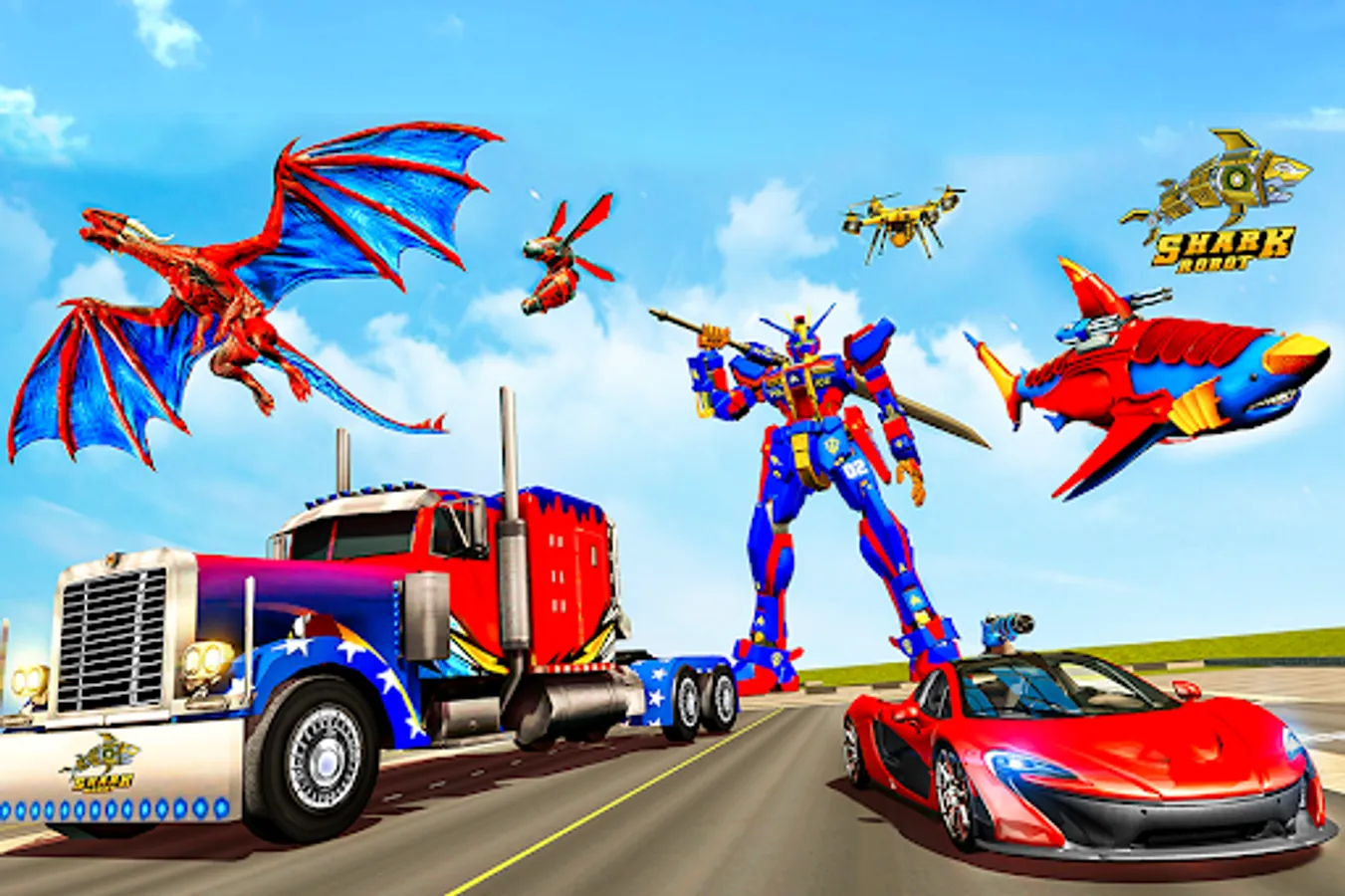 You might have enjoyed robot shark attacks in multi robot transform game but the flying turtle robot action and the smooth driving of US Police Truck Robot is unique to our shark robot game. High speed action of adds the necessary edge of transform robot car game with shark and turtle in multi transform robot game. Real Robot Shark– Shark Robot Transformation game, the latest in robot shark games and car robot game, where you up against enemies of future lets you transform into a robot truck to tackle car robot enemies. Evolution of futuristic robots has started in the robot transformation games which you will enjoy in our truck robot game. Experience deadly air robot attacks in the mix of car robot transform games. This shark robot attack ranks among action packed multi robot game and transform robot games. The rush of multi robot transformation in robot car game will hook you on to the game experience of robot transforming games. This underwater game takes the shark robot games to a high where the angry shark is lethal. Turtle Robot has been given the task of saving earth when you play our transforming robot game. Fly away with your ait robot when you download this unique robot transforming game. Its multi robot time with shark robot transform game.