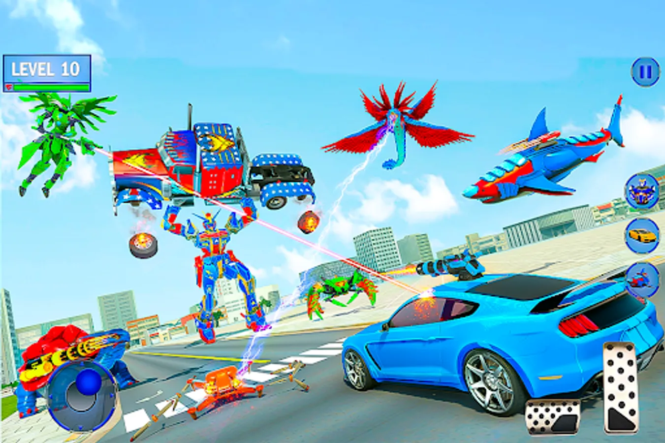 Dive into our latest car robot transform game where we present shark robot in car robot game. There is action in police truck robot game added to the pool of transforming robot game. Take your robot shark around town in or use the transformation button to transform it into a truck robot in the war against thugs in robot transformation games. Robot transforming games with real turtle robot in shark robot game is filled with thrilling modes and missions of transform robot games. Real Robot Shark–Robot Transformation game is our recent unique entry to the arena of robot transform games offering futuristic multi robot transformation. Transform to a shark robot and enjoy the mad thrill of driving your truck robot equipped with latest ammunition of robot car game to enjoy robot shark games all through the season. Evil forces from outer planets have invaded your city in multi robot game and only the skilled players of transform robot game will survive with shark robot and turtle robot added to the arena of transforming robot game. Enjoy missions not just on land but underwater as well as flying robot action in shark robot transform game. With robot shark you will experience awesome shark attack and flying turtle robot war which are unique to transforming robot games. You are in the driving seat of this thrilling shark robot transforming game. Its times you shift to robo shark games. It’s a season for the robot warriors of fierce shark robot game so jump in to robot transformation games. Truck robot along with turtle robot are unleashed in this robot transform war of space robots.
