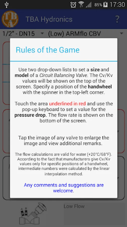 Circuit Balancing Valve's calculations