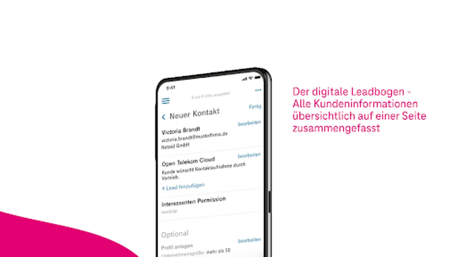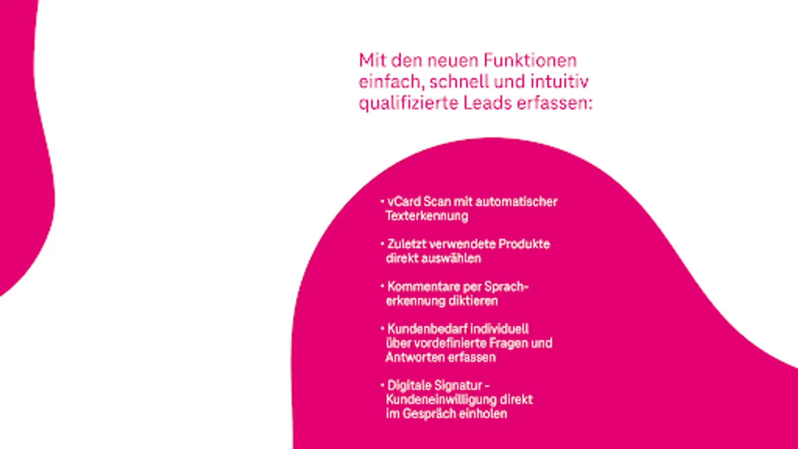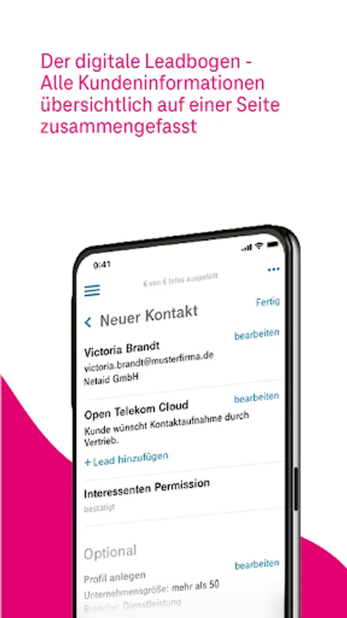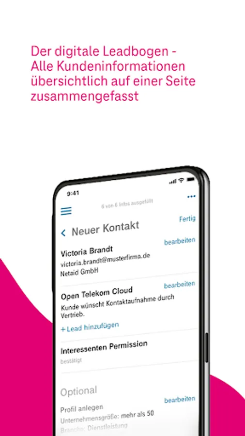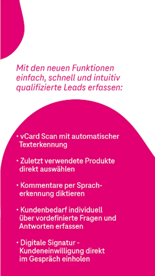The application is aimed at consultants from Telekom and T-Systems as well as Telekom partners. With the help of an app-supported checklist, customer discussions are automatically supplemented with the respective consulting context and can be seamlessly integrated into CRM systems.