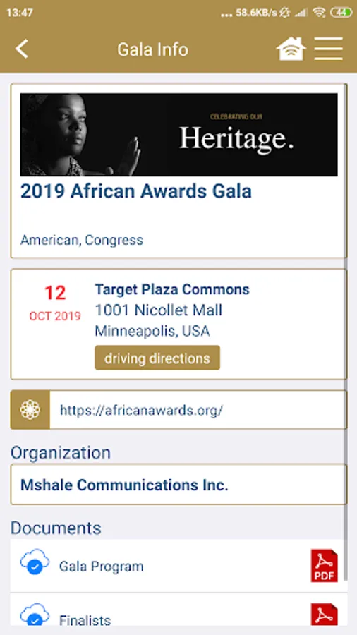 The app is rich in functionalities, branded with the event colors and has all the features and modules needed for the African Awards Gala.