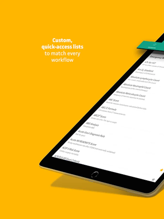 • Customizable lists for quick access: favorites, recently used, your specialty.