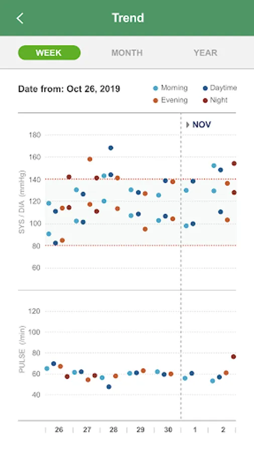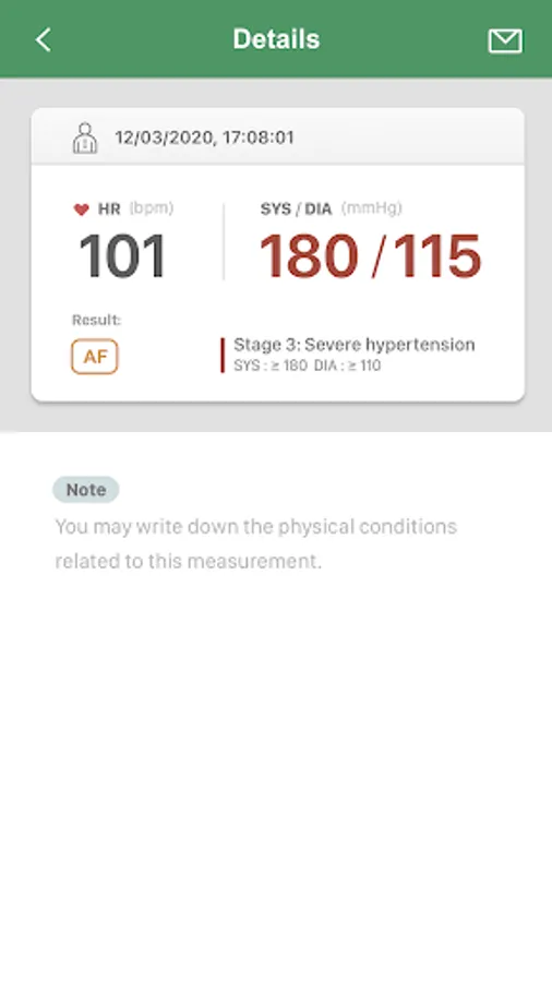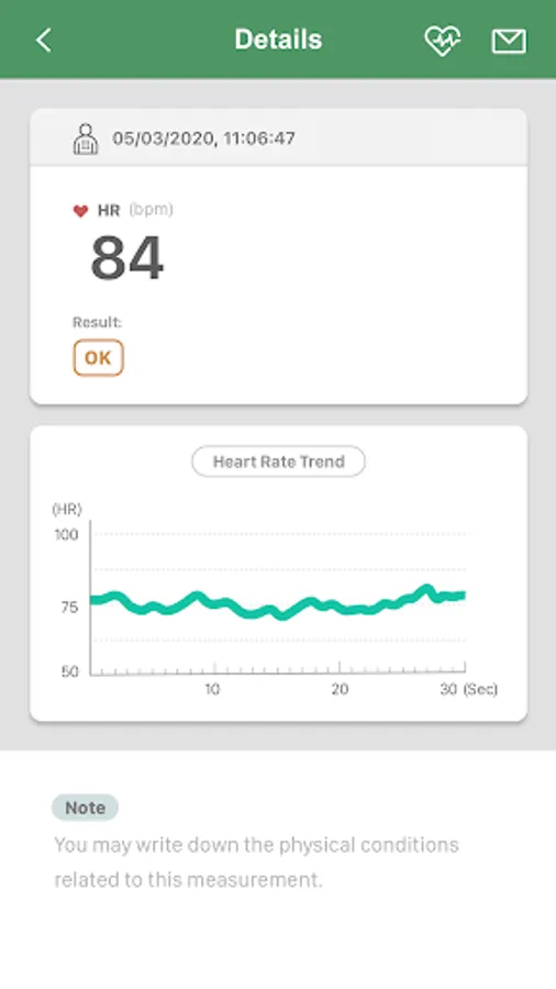 • Record your systolic / diastolic blood pressure, heart rate, heart rate trend graph, ECG waveform and measurement time.