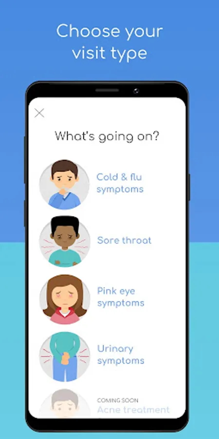 MDBox is is currently offering medical visits for a variety of conditions including, but not limited to: