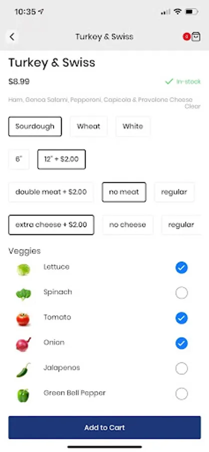 No pickles, extra onions? No problem. Easily build your favorite sub or sandwich with just a swipe.
