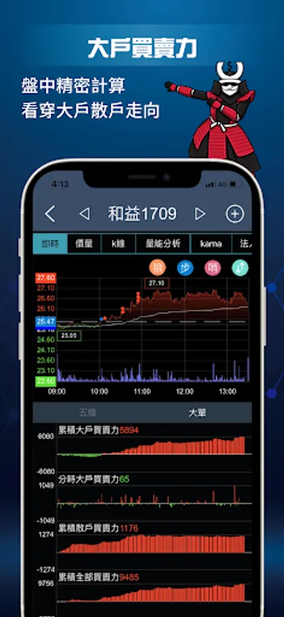 Speed is very important when conquering the sea of shares. K-line graphs, real-time trends, Kama values, technical indicators, and 5 quotations can be switched with one button to maximize the efficiency of your stock diagnosis.