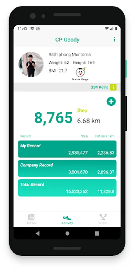 I joined the social network to help Charoen Pokphand employees. Who joined the project had good physical and mental health Through various exercises such as walking, running, cycling, swimming to record as distance Encourage everyone to be healthy