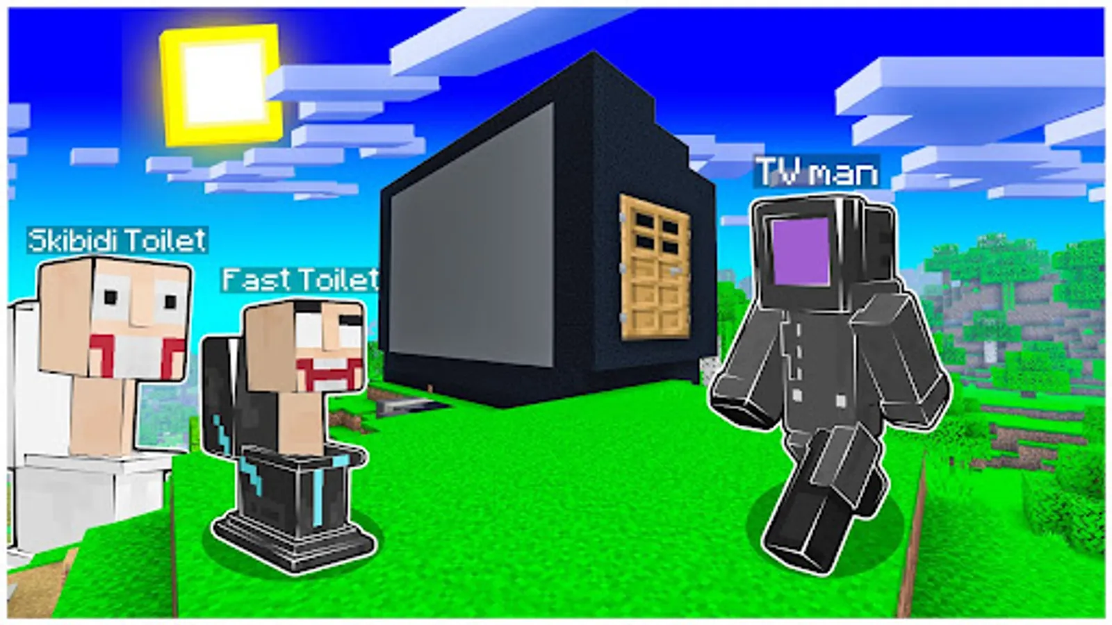Skibidi Mod for Minecraft Pocket Edition adds TVman and Camera man fighting to epic MCPE world. You can use skin of characters or other NPC to fight, craft and explore world of cubes and pixels.