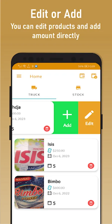 -add products from stock to the truck.