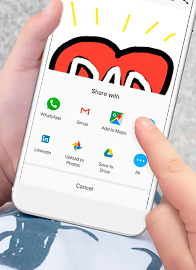 You can share drawings from the application itself on Whatsapp, Facebook and other social applications.