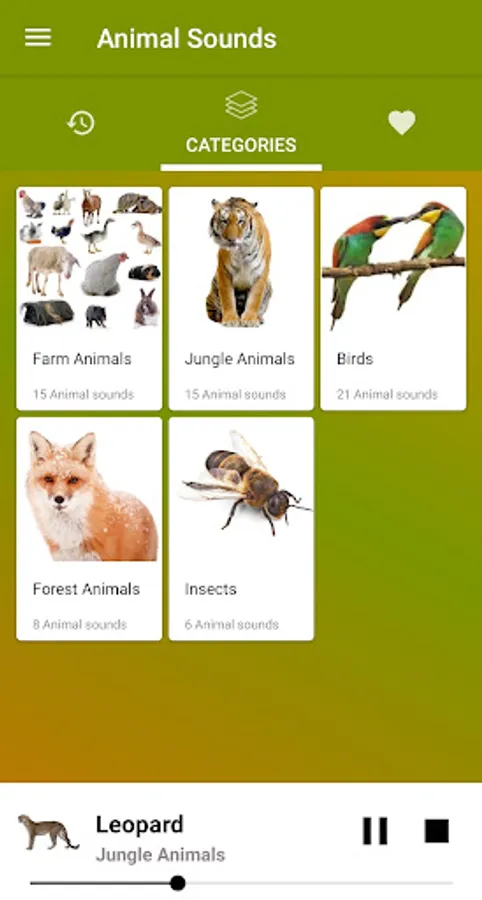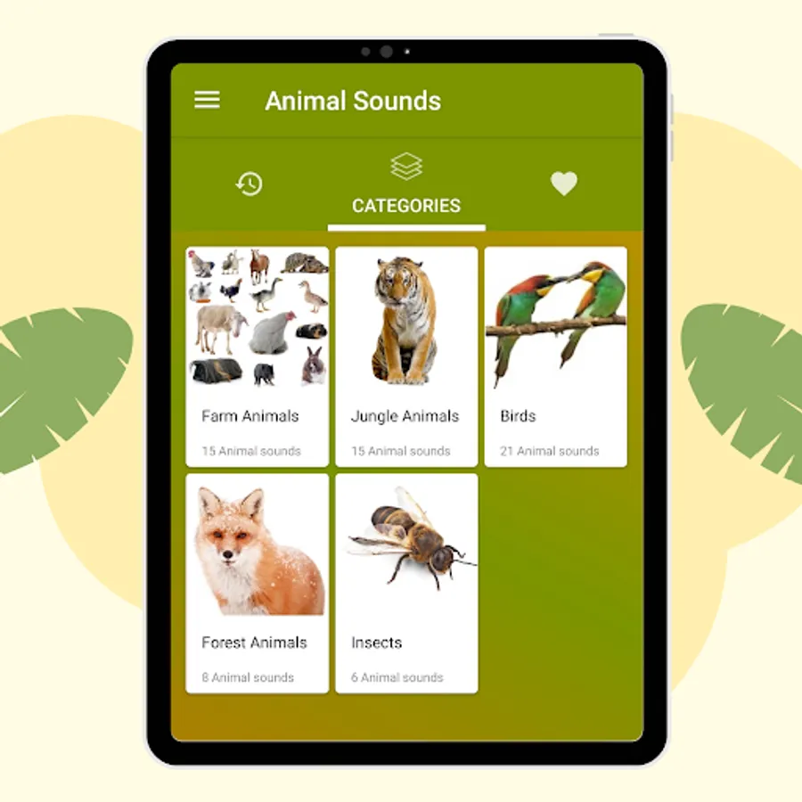The Animal Sounds Application is divided into several categories: