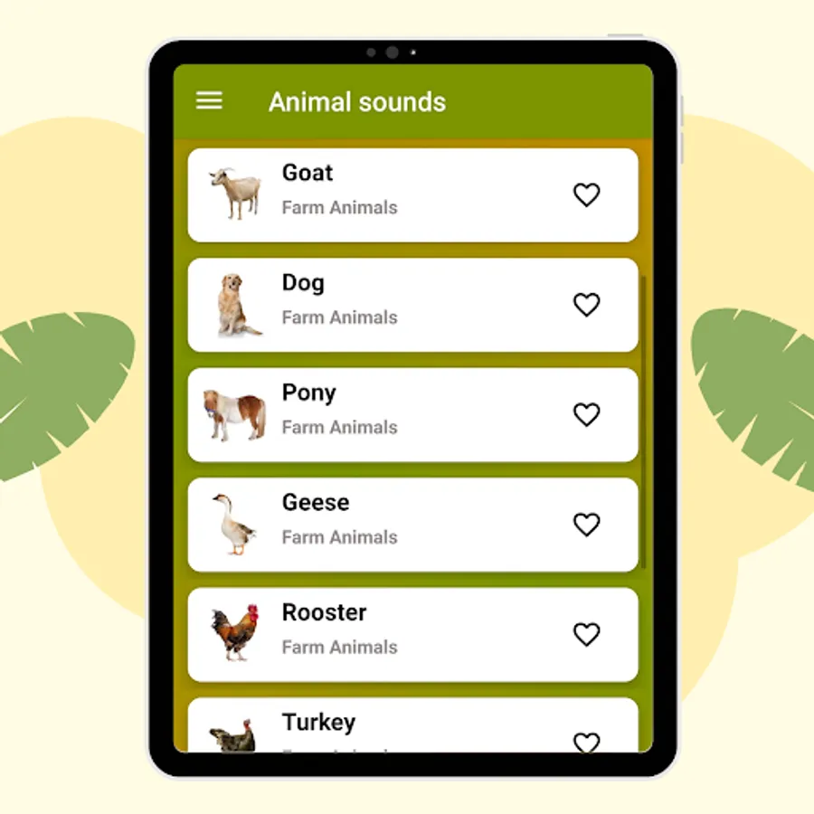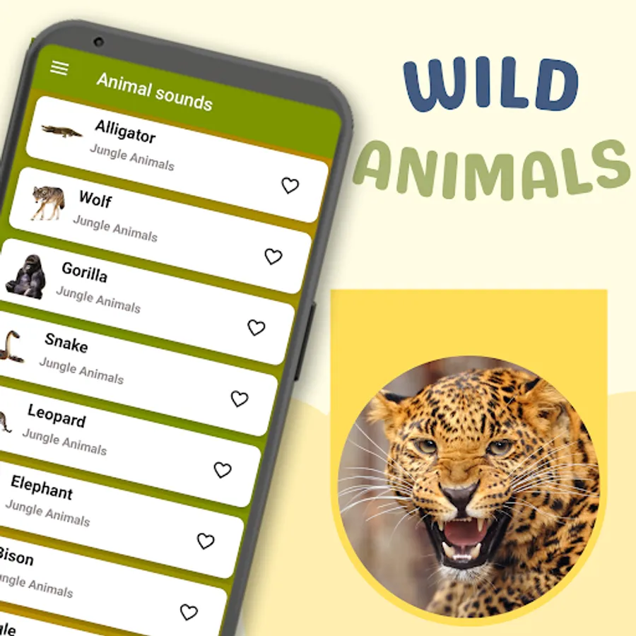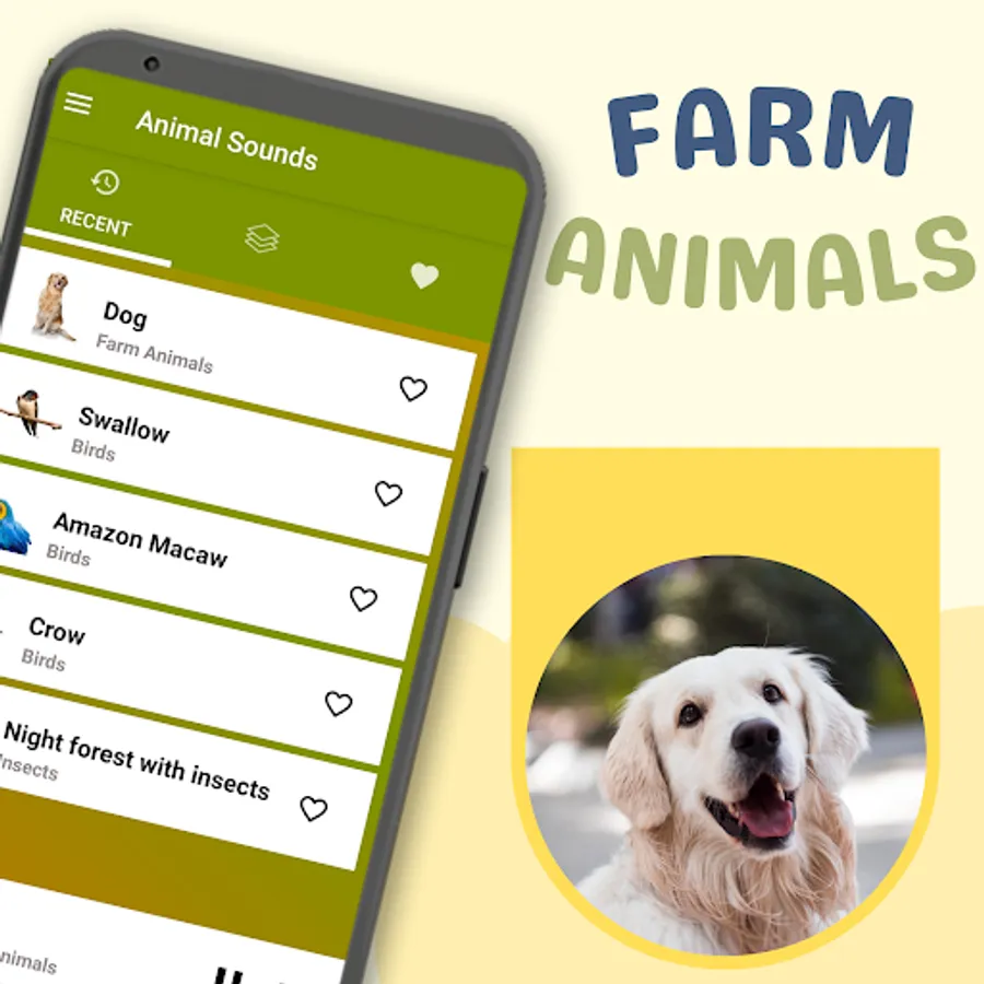 The Animal Sounds Application contains many real sounds of animals, birds and insects.