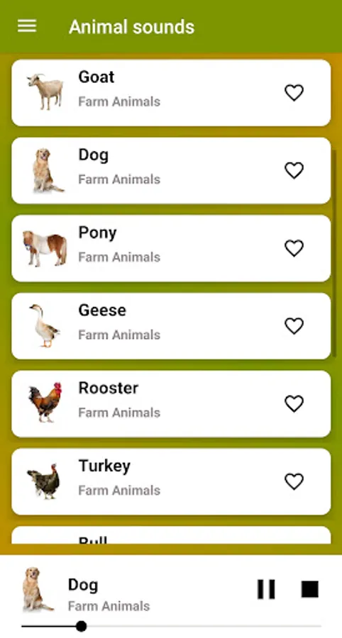 You will find high quality sounds of many animal species. The Animal Sounds Application has a simple and user friendly interface.