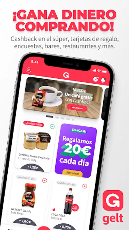 With GELT you will be able to earn easy money thanks to the main brands on the market with the best offers and promotions. Better than discount coupons and super fun! Download it and discover day by day our offers, promos and bargains to buy in the most important stores and supermarkets.