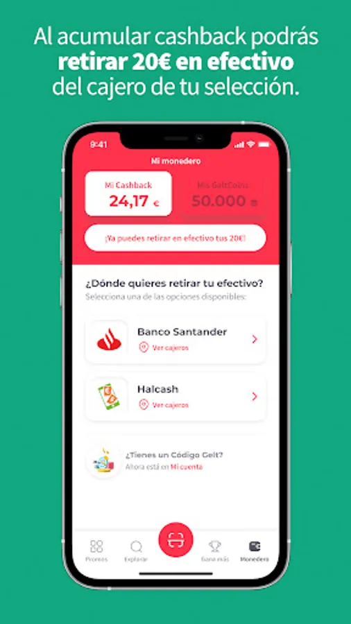 Accumulate all the money you generate with your purchases, surveys and gift tickets in your wallet in a comfortable, safe and simple way and every time you reach €20 you can withdraw it in cash from an ATM.